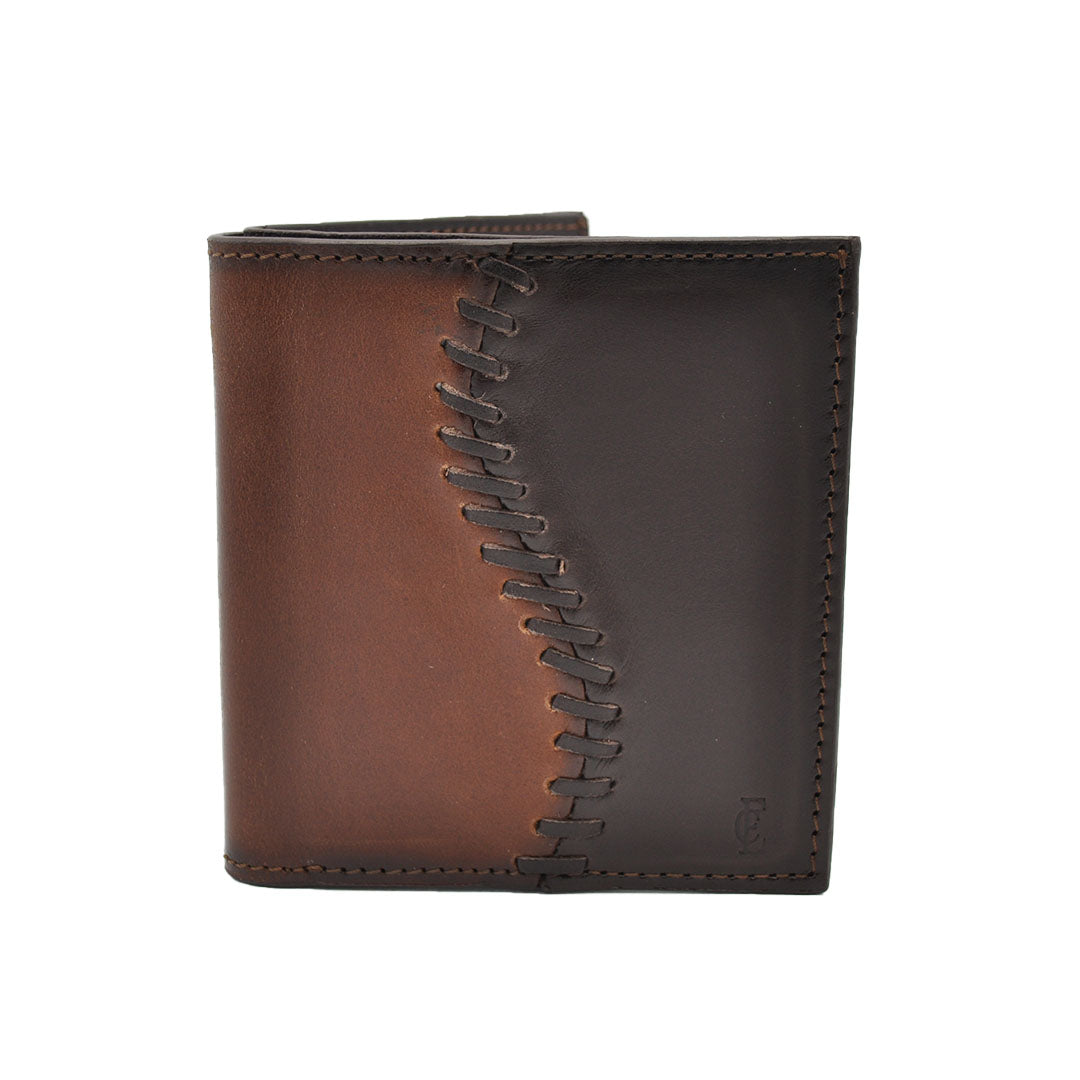 E.C. Billetera de hombre con puntada de cabra marrón/tabaco